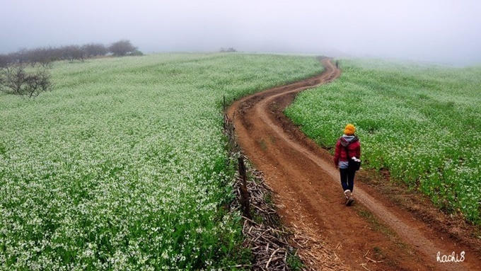 Mùa hoa cải Mộc Châu bắt đầu vào tháng 12 với thung lũng trắng xóa, mê hoặc dân phượt. Nếu muốn có bộ ảnh đẹp ở đây thì bạn nên để ý thời gian hoa nở thật kỹ vì hoa cải chóng nở, chóng tàn - Ảnh: hachi8