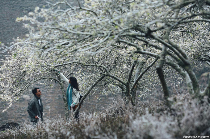 Tháng giêng, khi tiết trời dần sang xuân cũng là lúc hoa mận nở trắng ở Mộc Châu. Loài hoa này chỉ nở khoảng từ 1 đến 2 tuần là tàn rồi đâm chồi nảy lộc non xanh biếc nên du khách muốn chiêm ngưỡng phải canh thời gian thật chuẩn xác. Hoa mận Mộc Châu thường nở thành hai đợt, đợt thứ hai muộn hơn, tầm gần Tết Âm lịch. - Ảnh: Chit Photography