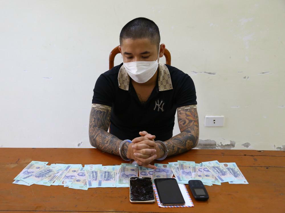 Đối tượng Phùng Việt Trinh cùng tang vật. |