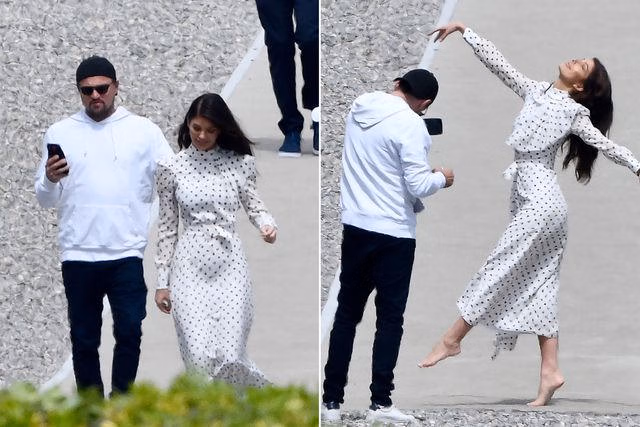 Camila Morrone chụp hình cho tài tử phim Titanic