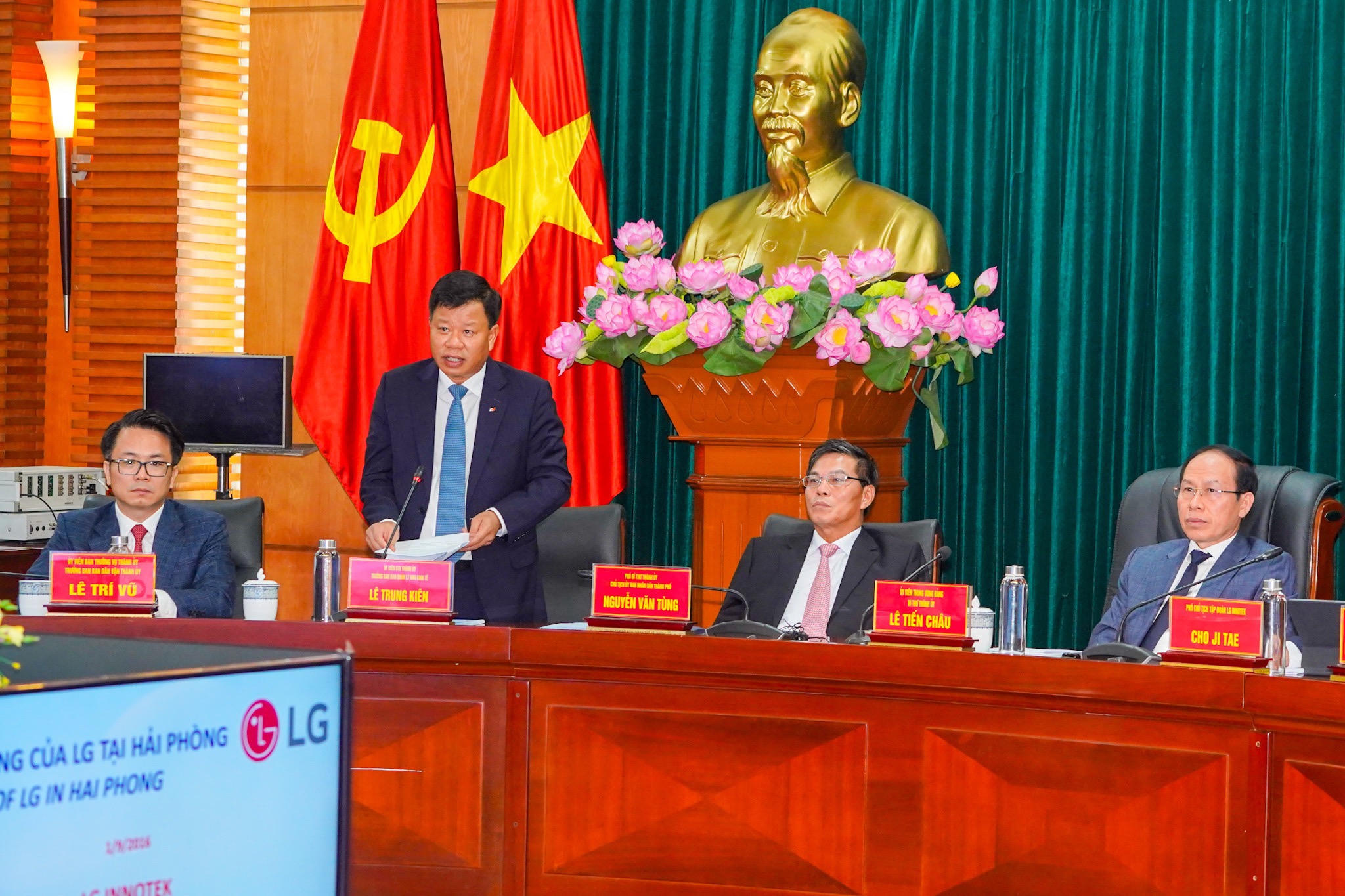 Phát biểu tại hội nghị, Bí thư Thành ủy Hải Phòng Lê Tiến Châu khẳng định, TP Hải Phòng cam kết luôn đồng hành và tạo mọi điều kiện tốt nhất để LG triển khai các dự án hiệu quả tại Hải Phòng. Minh chứng cụ thể cho cam kết này là chỉ sau 6 ngày kể từ cuộc làm việc giữa Đoàn công tác Xúc tiến đầu tư của thành phố với LG Innotek tại Hàn Quốc từ ngày 11 - 14/6/2023, Thường trực Thành ủy đã ban hành Thông báo số 1545-TB/TU ngày 20/6/2023 đồng ý chủ trương điều chỉnh Dự án nhà máy LG Innotek Hải Phòng. Trên cơ sở đó, ngày 21/6/2023, Ban Quản lý Khu kinh tế Hải Phòng đã điều chỉnh Giấy chứng nhận đầu tư để LG Innotek thực hiện mở rộng dự án trên với tổng vốn đầu tư của toàn dự án là 2,051 tỷ USD (tăng 1 tỷ USD so với trước đây).