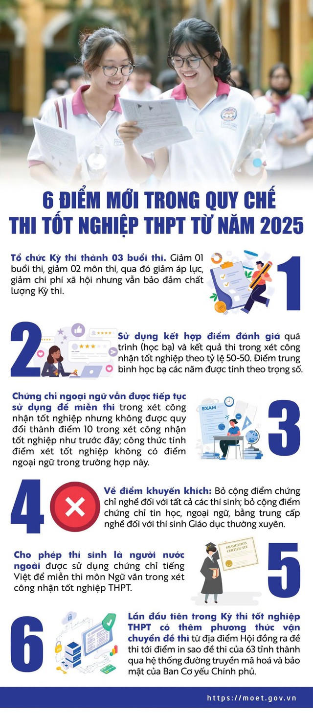 | 6 điểm mới trong Quy chế thi tốt nghiệp THPT từ năm 2025 |