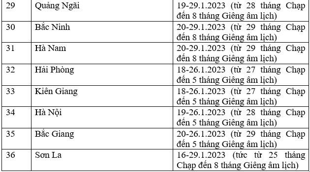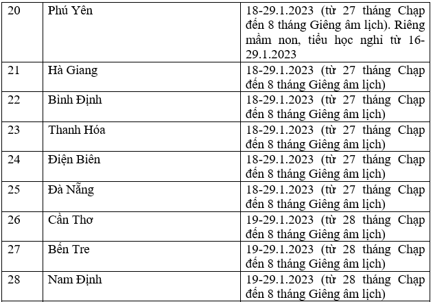 Lịch nghỉ Tết Nguyên đán 2023 của học sinh các tỉnh thành mới nhất như sau: