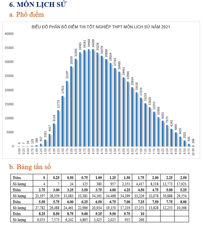 Số thí sinh đạt điểm dưới trung bình môn Lịch sử năm 2020 là 260.074, chiếm tỷ lệ 46,95%, năm nay thí sinh đạt điểm dưới trung bình là 331,429 em, chiếm tỷ lệ 52,03%.
