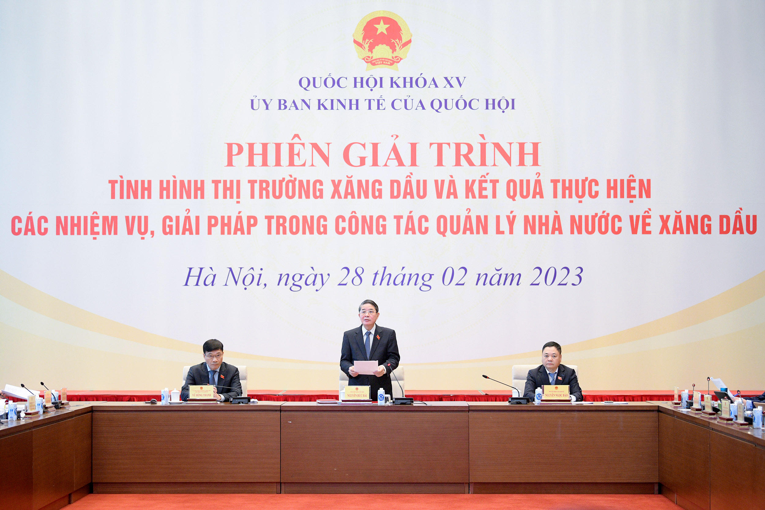 (PLVN) - Sáng nay (28/2), Ủy ban Kinh tế của Quốc hội (QH) tổ chức Phiên giải trình về tình hình về thị trường xăng dầu và kết quả thực hiện các nhiệm vụ, giải pháp trong công tác quản lý Nhà nước về xăng dầu.