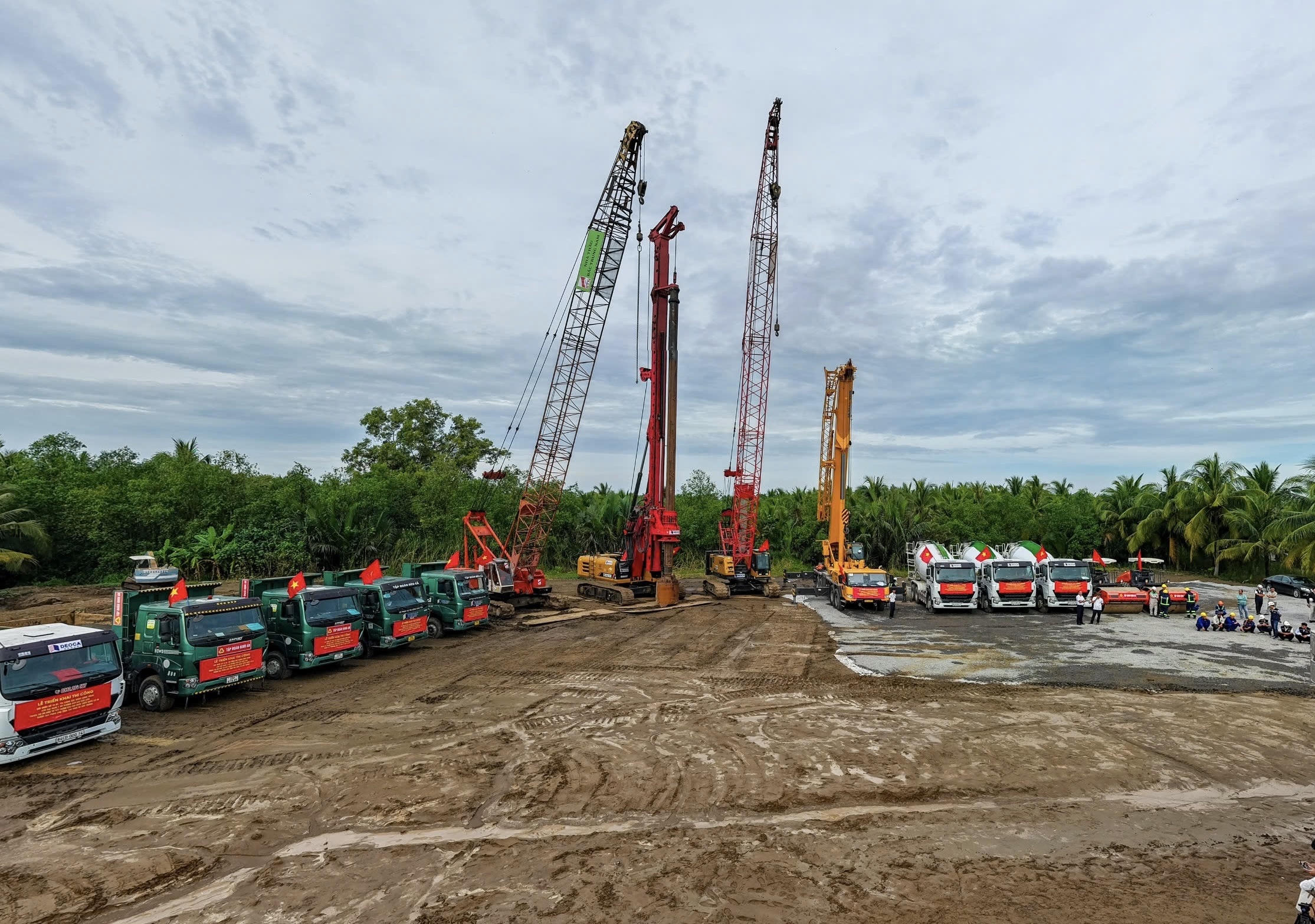 Ông Nguyễn Tấn Đông – Phó Chủ tịch HĐQT Tập đoàn Đèo Cả cho biết, ngay sau khi trúng thầu, liên danh Đèo Cả đã triển khai nhân sự đến tiếp cận hiện trường, xây dựng văn phòng điều hành dự án, huy động máy móc thiết bị chuyên dụng đến công trường để triển khai thi công ngay sau lễ triển khai.