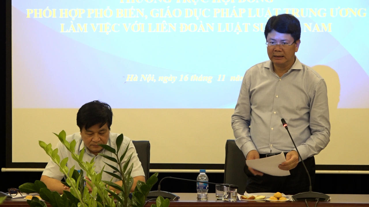 Theo Phó Chủ tịch Hội đồng PBGDPLTƯ, điểm nhấn của đổi mới công tác PBGDPL là việc Thủ tướng Chính phủ đã ban hành Đề án “Tăng cường năng lực tiếp cận pháp luật của người dân” theo Quyết định số 977. Do đó, đề nghị Liên đoàn LSVN nghiên cứu, phối hợp với Bộ Tư pháp xây dựng Kế hoạch để tham gia thực hiện Đề án trên bởi đây là việc làm hết sức ý nghĩa, thiết thực. Và việc phối hợp PBGDPL giữa luật sư, các công ty luật, Đoàn luật sư địa phương với các cơ quan nhà nước, tổ chức xã hội thể hiện rõ trách nhiệm của đội ngũ luật sư với Đảng, Nhà nước và toàn thể cộng đồng xã hội.