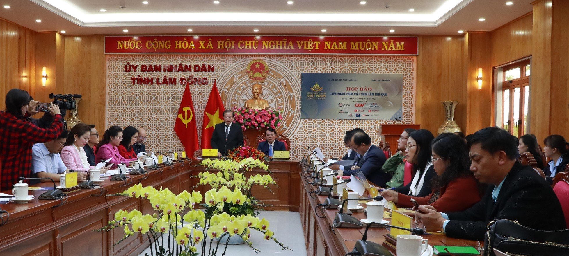 Chiều 12/11, tại TP Đà Lạt, Bộ VH-TT&DL phối hợp với UBND tỉnh Lâm Đồng tổ chức Họp báo Liên hoan phim Việt Nam lần thứ XXIII. Với thông điệp “Xây dựng công nghiệp điện ảnh Việt Nam giàu bản sắc dân tộc, hiện đại và nhân văn”, Liên hoan phim Việt Nam lần thứ XXIII được diễn ra từ ngày 21 đến ngày 25/11 tại TP Đà Lạt (tỉnh Lâm Đồng). Liên hoan phim do Bộ VH-TT&DL, UBND tỉnh Lâm Đồng chỉ đạo, Cục Điện ảnh phối hợp với Sở VH-TT&DL tỉnh Lâm Đồng và các đơn vị liên quan tổ chức thực hiện.