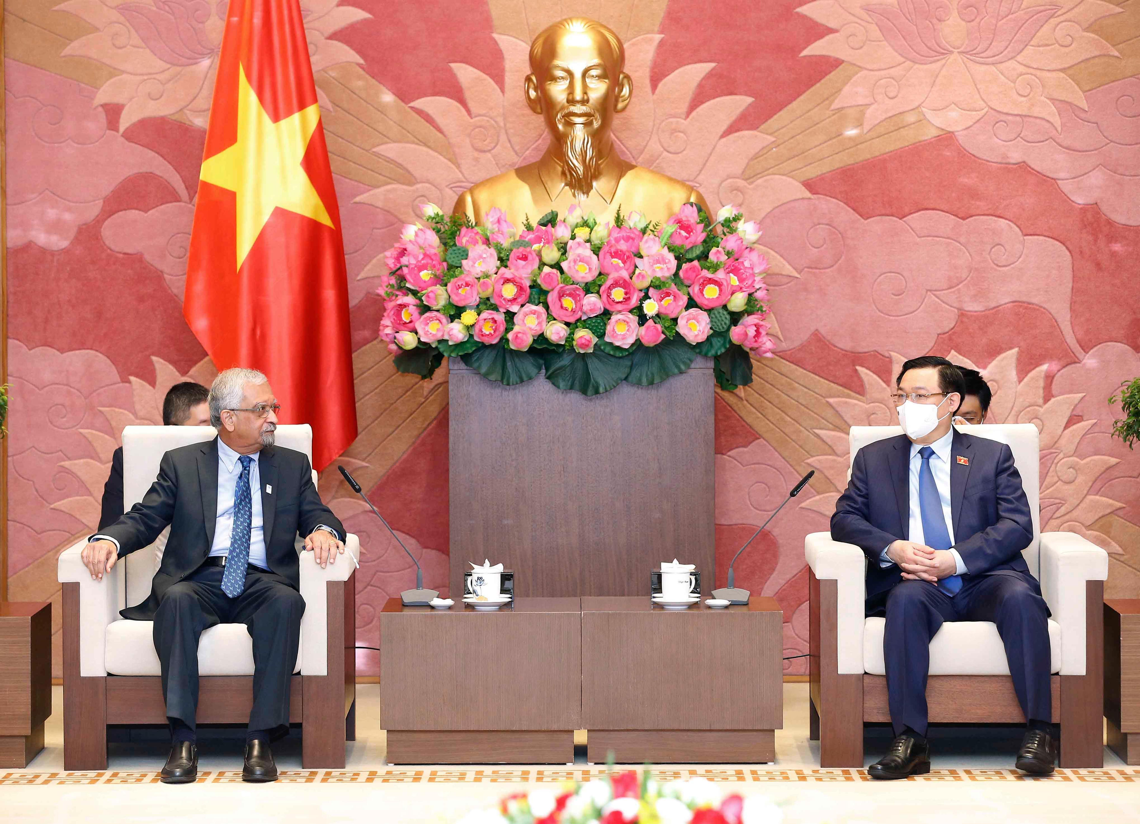 Chủ tịch Quốc hội Vương Đình Huệ chúc mừng ông Kamal Malhotra đã có một nhiệm kỳ thành công, góp phần thúc đẩy hoạt động của Việt Nam trong Liên Hợp quốc (LHQ) cũng như đóng góp vào sự phát triển kinh tế - xã hội của Việt Nam.