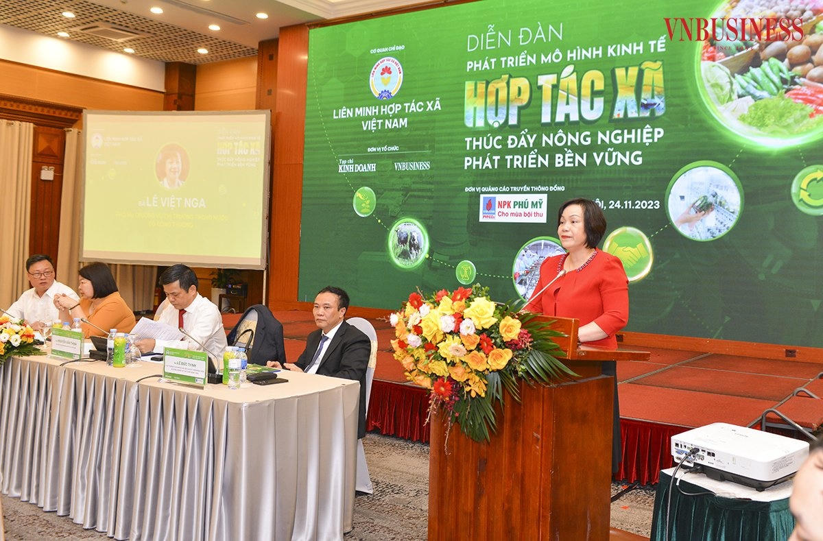 Phát biểu khai mạc Diễn đàn, Chủ tịch Liên minh HTX Việt Nam Cao Xuân Thu Vân đánh giá Diễn đàn là cơ hội để lắng nghe tiếng nói của các doanh nghiệp, HTX thể hiện tâm tư nguyện vọng, đề xuất phát triển mô hình kinh tế tập thể, HTX theo hướng bền vững, trong đó ưu tiên HTX nông nghiệp, nâng cao chuỗi giá trị sản xuất nông nghiệp.