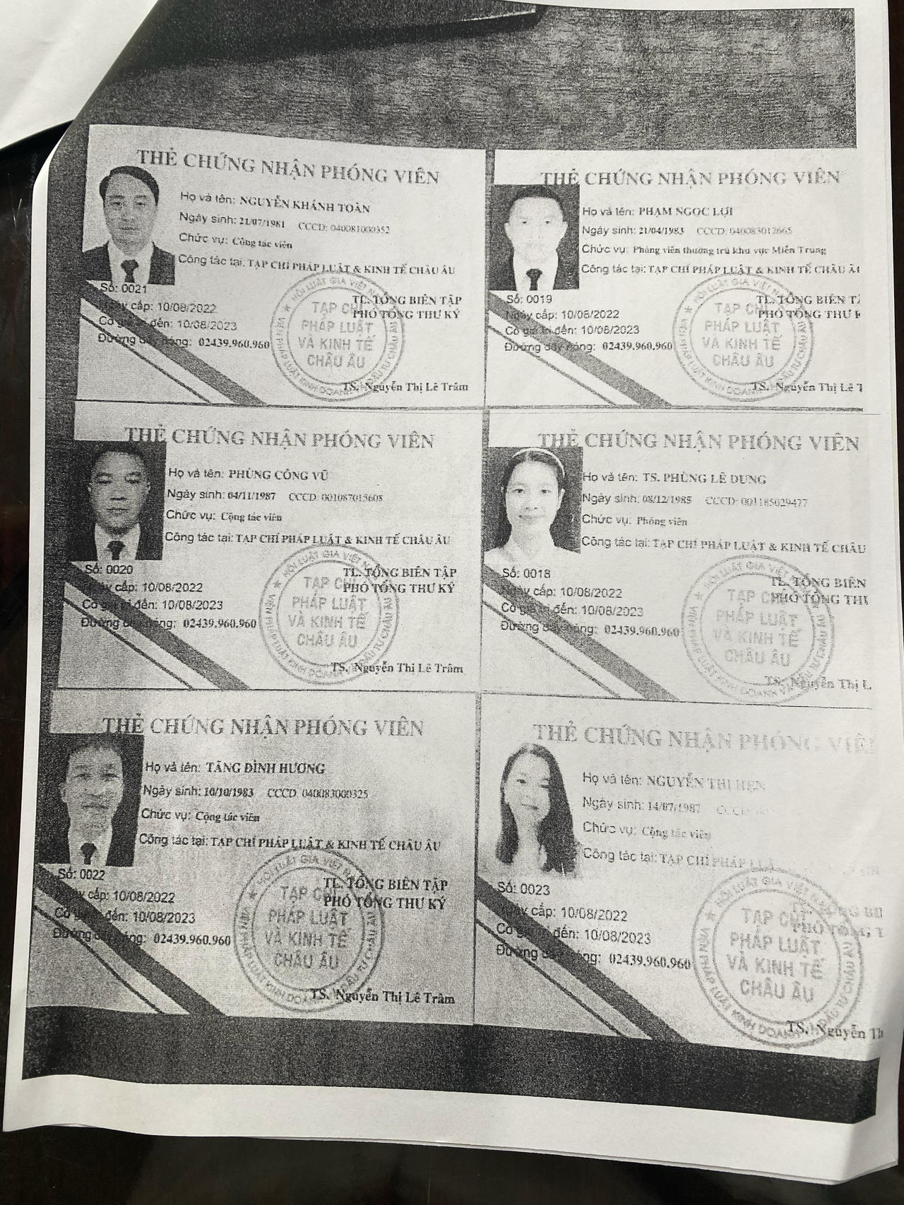 Nhiều cán bộ, nhân viên hiện đang trong biên chế của IEBLI cho biết Lê Hoàng Anh Tuấn chỉ đạo cấp ồ ạt các thẻ phóng viên cho nhiều cá nhân không có quan hệ lao động với tạp chí Pháp luật và Kinh tế châu Âu. Lê Hoàng Anh Tuấn đã mạnh mẽ tuyên bố việc cấp thẻ phóng viên như thế này đã được sự cho phép của Bộ Công An. Việc cấp thẻ phóng viên ồ ạt là để lôi kéo nhiều nộp tiền, nhận thẻ phóng viên. Nhiều người bị lừa vì họ muốn sở hữu Thẻ phóng viên, mỗi người đều có một hay một vài mục đích khi tìm cách sở hữu Thẻ phóng viên của tạp chí Pháp luật và Kinh tế châu Âu. Nhiều thẻ phóng viên được do bà Nguyễn Thị Lê Trâm tự đóng dấu sẵn. Không rõ trách nhiệm này thuộc về bà Nguyễn Thị Lê Trâm hay nhà báo quốc tế Lê Hoàng Anh Tuấn với tư cách là người đứng đầu của cơ quan chủ quản IEBLI và đang nắm giữ con dấu của Tạp chí? Hãy xem họ sẽ phân chia trách nhiệm trước pháp luật như thế nào?