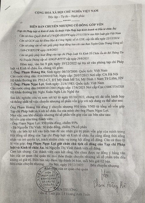 Biên bản chuyển nhượng cổ phần tạp chí |