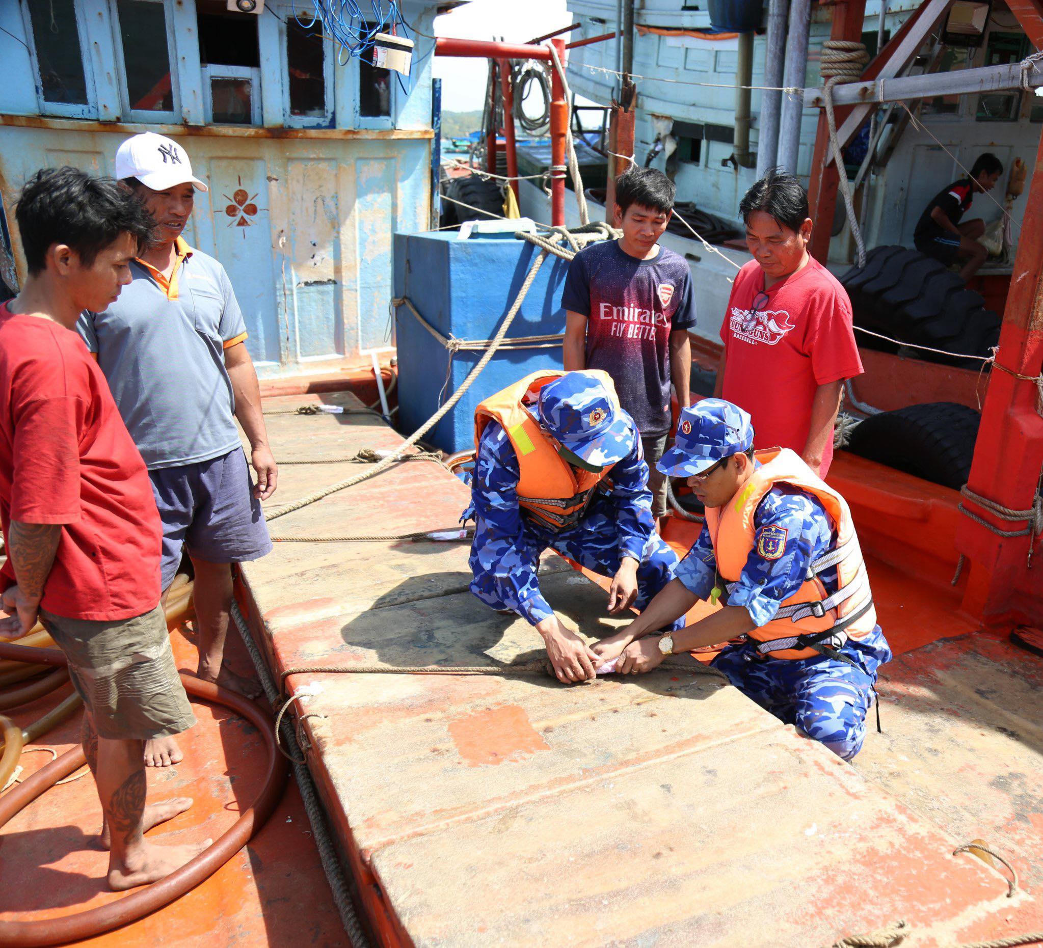 Cảnh sát biển kiểm tra tàu cá vi phạm. |