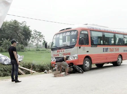 Chiếc xe bus tiếp tục cuốn cả chiếc xe và nạn nhân vào dưới gầm. Hậu quả, người đi xe máy tử vong tại chỗ, xe máy hư hỏng nặng. Mặc dù va chạm mạnh, nhưng hàng chục hành khách trên xe thoát chết.