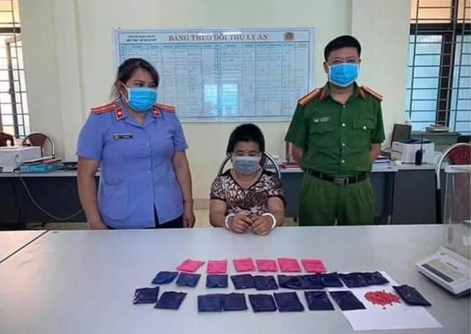 Đối tượng Sồng Thị Sống cùng tang vật tại cơ quan công an. |