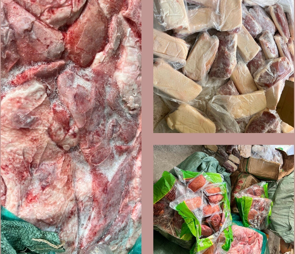 Số thực phẩm đông lạnh bị lực lượng chức năng thu giữ (Ành: Công an TP Hà Nội). |