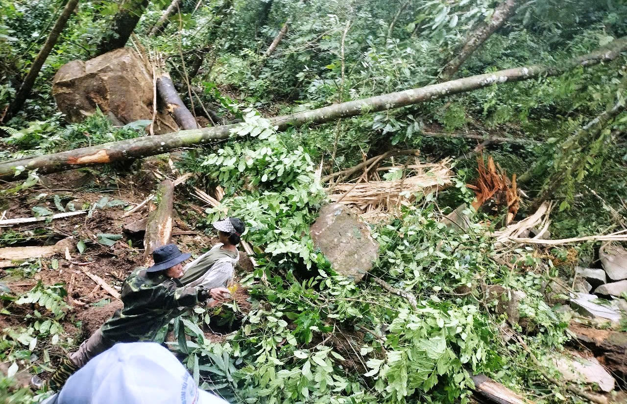 Nhiều tảng đá lớn lăn xuống ngôi làng sau 2 trận động đất cường độ lớn xảy ra tại tỉnh Kon Tum vào chiều 30/11. |