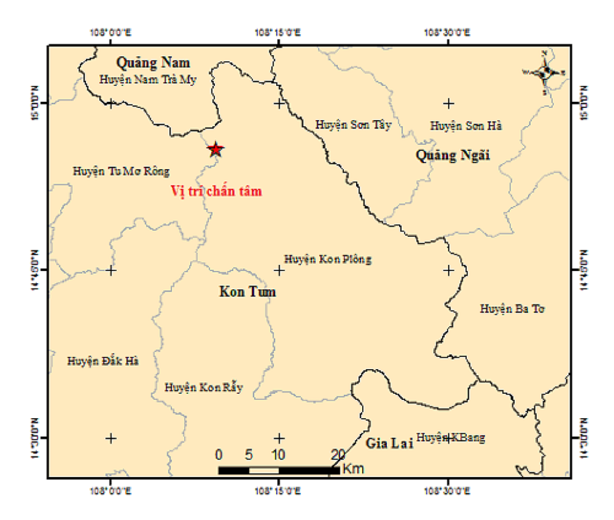 Theo đó, trận động đất vào tiên xảy ra vào lúc 21 giờ 52 phút ngày 3/12, một trận động đất có độ lớn 2,5 xảy ra tại vị trí 14.969 độ vĩ Bắc, 108.137 độ kinh Đông, độ sâu chấn tiêu khoảng 8,1 km. Trận động đất xảy ra tại khu vực huyện Nam Trà My, Quảng Nam.