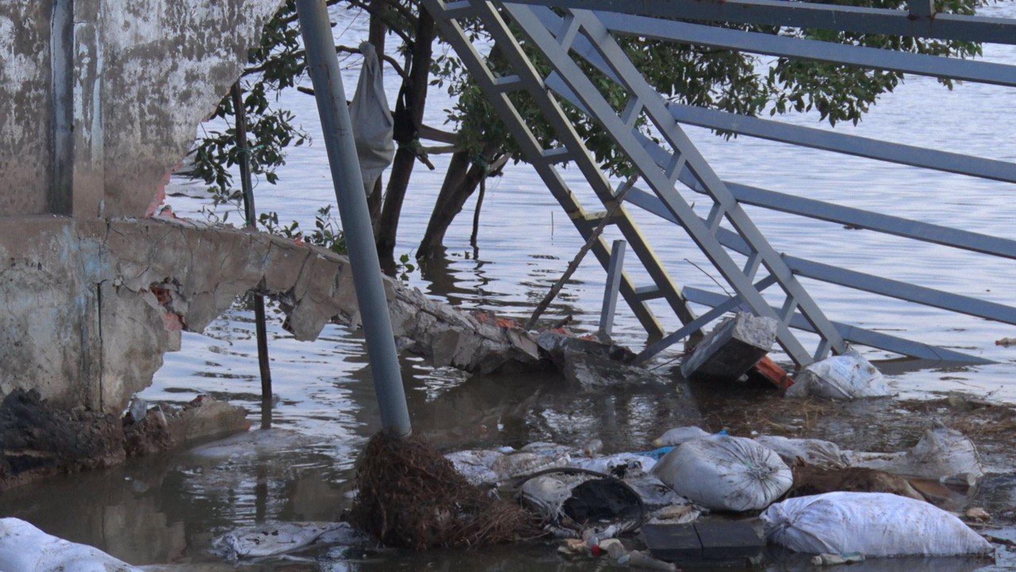 Cụ thể, đoạn sạt lở dài 59 mét, chiều ngang 20 mét, tổng diện tích bị sạt lở khoảng 1.180m2, gồm: nhà xưởng xây dựng tiền chế (mái tol lạnh, khung sắt mạ kẽm…); 1 hồ xử lý nước thải (xây dựng bằng bê tông, cốt thép) cùng toàn bộ hàng rào xây dựng bằng bê tông sạt lở hoàn toàn. Ước tổng thiệt hại về tài sản trên 2 tỷ đồng.