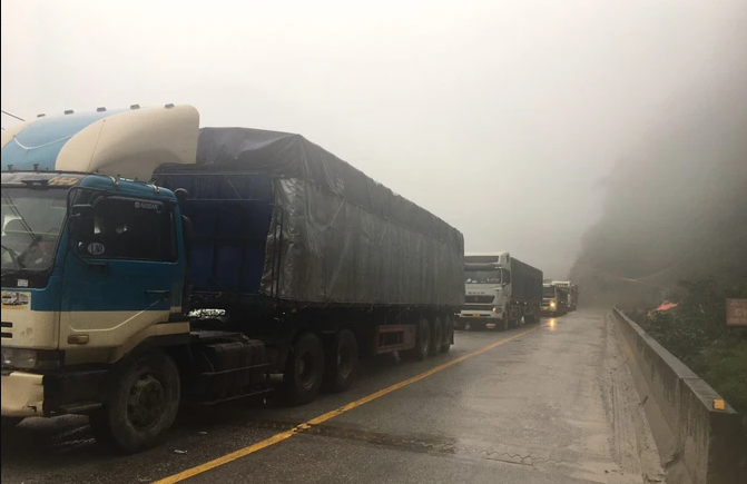 Nhiều phương tiện lên cửa khẩu quốc tế Cầu Treo và ngược bị ách tắc. Ảnh: PV |