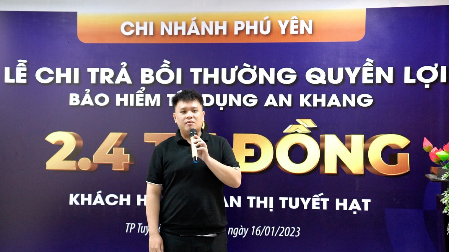 Ngày 16/01/2023, Lễ chi trả bồi thường cho gia đình chị Tuyết Hạt được Chi nhánh tổ chức. Tổng số tiền được chi trả là 2,4 tỷ đồng giúp gia đình khách hàng hàng không phải lo lắng về việc trả nợ cho Ngân hàng cũng như bảo vệ tài sản của gia đình để có thể tiếp tục làm ăn, sinh sống.