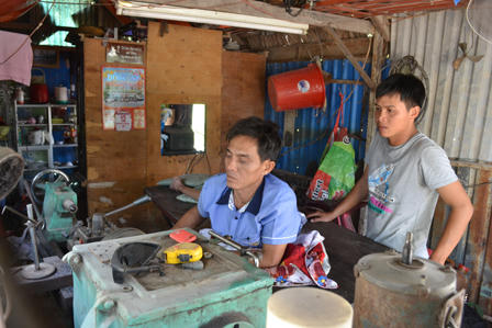 Vì thế nhiều lúc sửa đồ cho khách phải chạy đi nhờ máy tiện nơi khác. Hôm nào đứa cháu có ở nhà thì khỏe, không có nó, phải réo đầu này, kêu đầu khác mới có người đi giúp. Đợi gom góp được một ít, tôi sẽ đổi ngay cái máy tiện khác cho thuận lợi”.