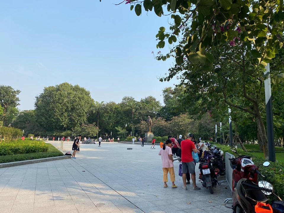 Liều lĩnh bỏ khẩu trang, tụ tập 'buôn chuyện' giữa Công viên Lê-nin Hà Nội