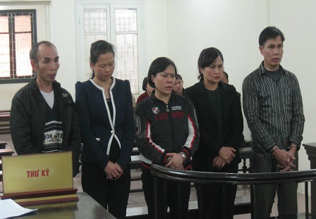 Cả 5 bị cáo đều bị VKSND TP Hà Nội truy tố về tội Làm giả con dấu, tài liệu của cơ quan, tổ chức theo Khoản 1 Điều 267 Bộ luật Hình sự. Tại phiên tòa ngày 21/1/2015, Ngân, Tâm, Hanh, Hường, Hiếu đã thừa nhận toàn bộ hành vi phạm tội của mình.