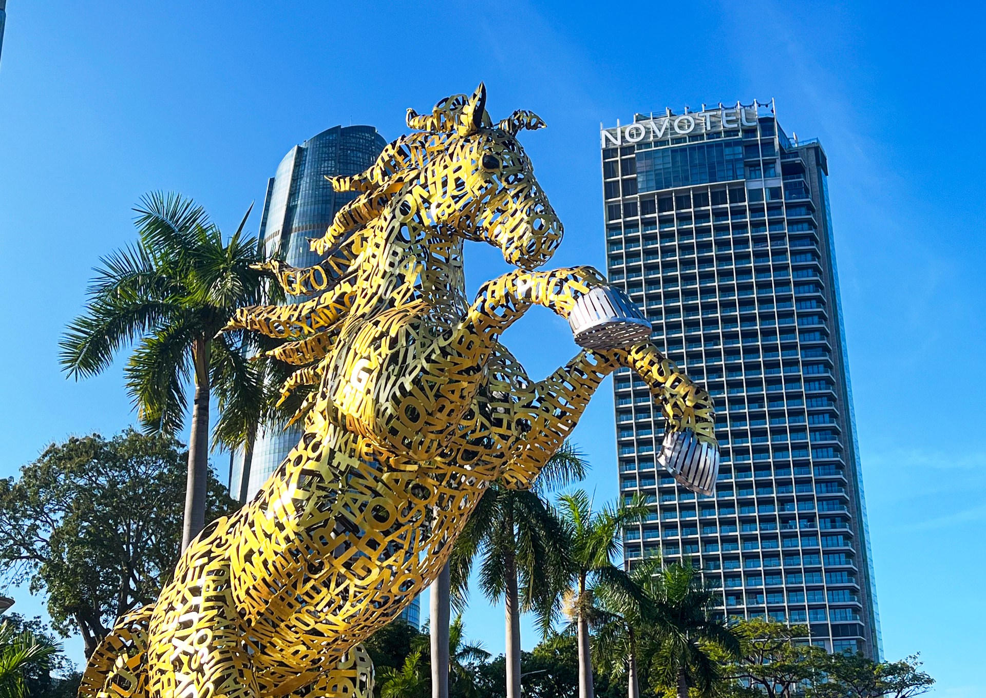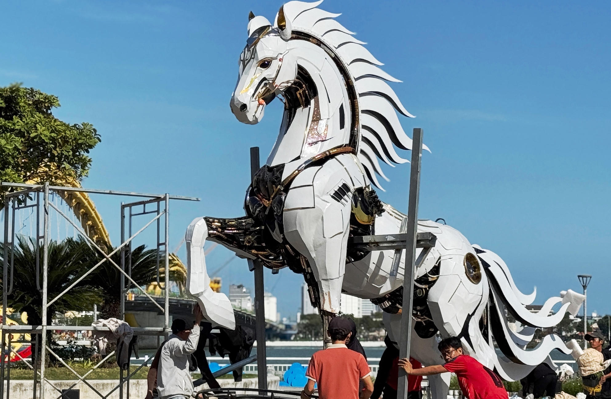Bên cạnh “Kim Mã Hợp Nhất”, thành phố đang khẩn trương lắp đặt linh vật “Kim Mã 4.0” tại khu vực sàn cảnh quan phía nam, đoạn đuôi cầu Rồng, hướng ra sông Hàn, gợi mở hình ảnh Đà Nẵng hiện đại, đổi mới.