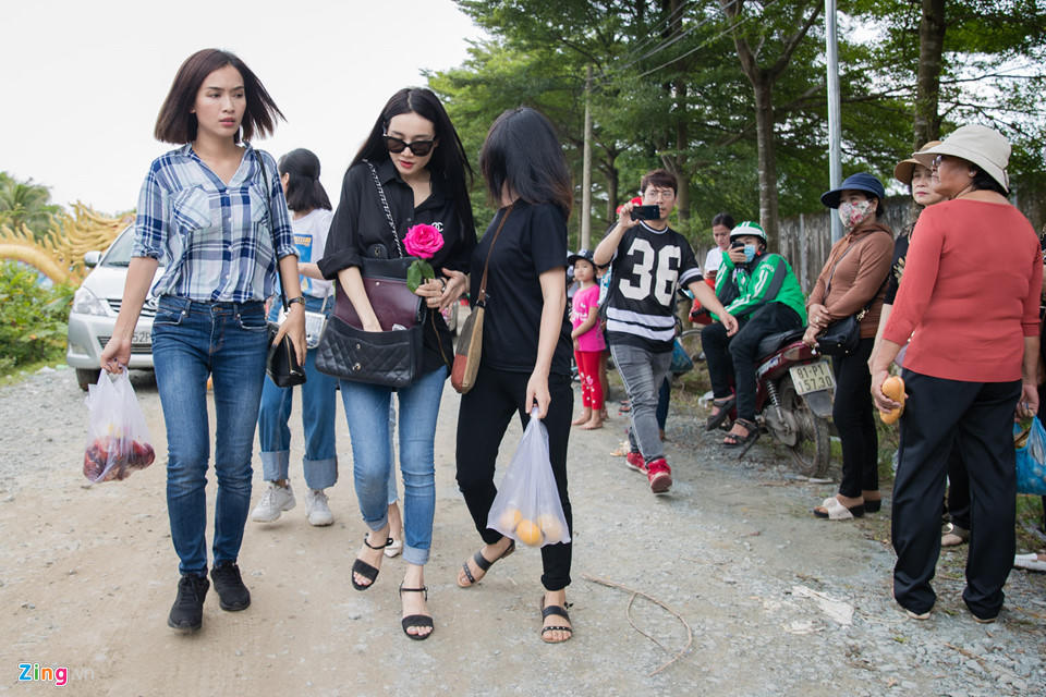 Lần này cô đi cùng người bạn thân thiết của mình là ca sỹ Ái Phương và trợ lý của mình.
