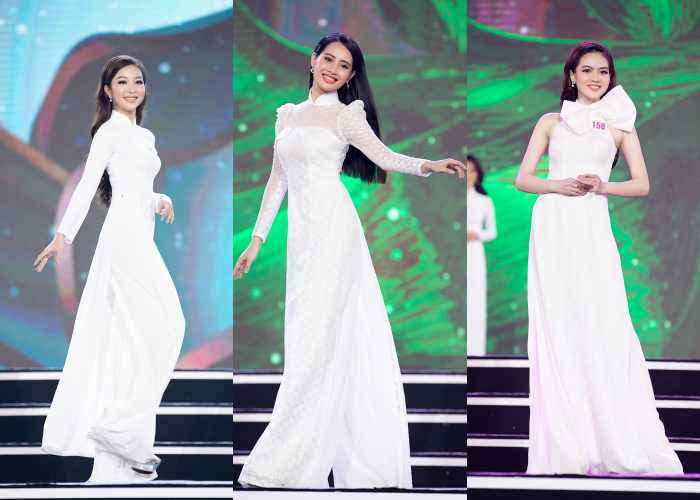 | Những điểm nhấn tỉ mỉ, tinh tế trên nền áo dài trắng hòa quyện cùng nhan sắc trẻ trung của những thí sinh, phần trình diễn là một hơi thở hiện đại, tươi mới. |