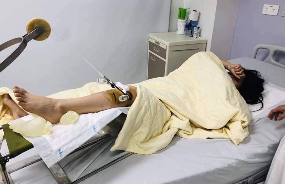 | Nạn nhân Trang đang được điều trị tại bệnh viện sau khi gặp nạn |