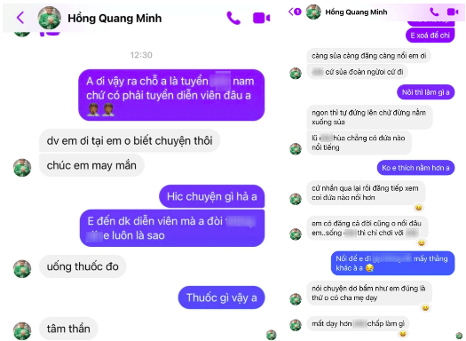 Qua tin nhắn có thể thấy rằng, Minh Béo đã chủ động liên lạc với Tuấn Nguyễn trước, nhưng lại thay đổi thái độ sau khi bị nam diễn viên trẻ họ Nguyễn đối chất tố cáo sau buổi hẹn phỏng vấn. Minh Béo còn dùng những lời lẽ khá thô tục khi đối chất với Tuấn Nguyễn... Hiện bài đăng này đang thu hút rất nhiều sự chú ý của cư dân mạng.