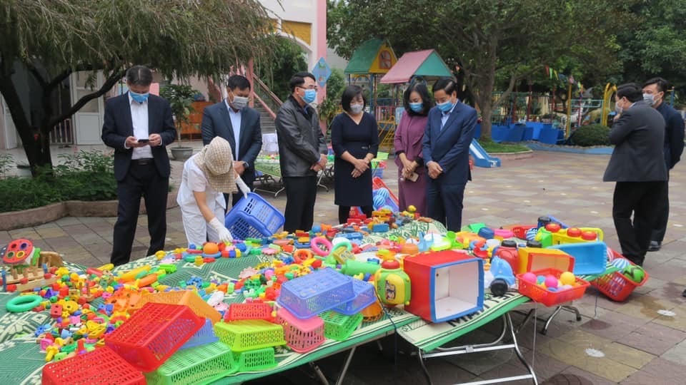 Tại thời điểm kiểm tra nhà trường chỉ phân công một số giáo viên, người lao động dọn dẹp khu vực sân trường, hành lang, các lớp học khóa kín cửa, chưa dọn dẹp, khử trùng.