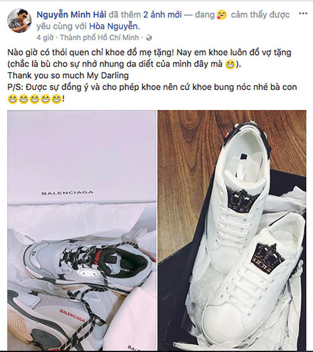Người đàn ông này còn chia sẽ status khiến nhiều người bất ngờ: "Nào giờ có thói quen chỉ khoe đồ mẹ tặng! Nay em khoe luôn đồ vợ tặng (chắc là bù cho sự nhớ nhung da diết của mình đây mà). Thank you so much My Darling. Được sự đồng ý và cho phép khoe nên cứ khoe bung nóc nhé bà con".