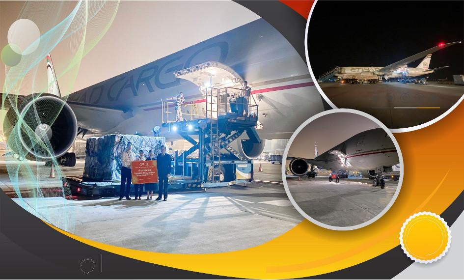 Phát biểu tại lễ tiếp nhận vắc xin, Ths.BS. Trần Mỹ Linh – Tổng giám đốc Công ty cổ phần y dược phẩm Vimedimex cho biết, một triệu liều vắc xin Hayat-Vax được khởi hành trên chuyến bay AUH 77X, EY 0991 từ sân bay Abu Dhabi UAE chính thức hạ cánh xuống sân bay quốc tế Nội Bài, vào hồi 21h15 phút.