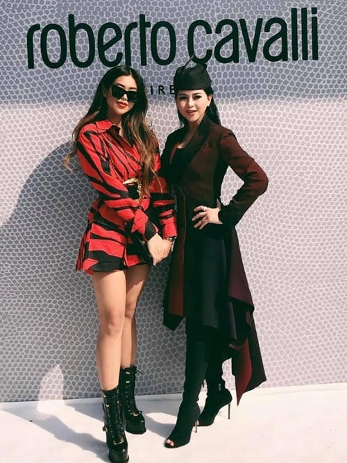 Hai mẹ con Tiên Nguyễn nổi bật tại show thời trang của nhà thiết kế danh tiếng Italy Roberto Cavalli.