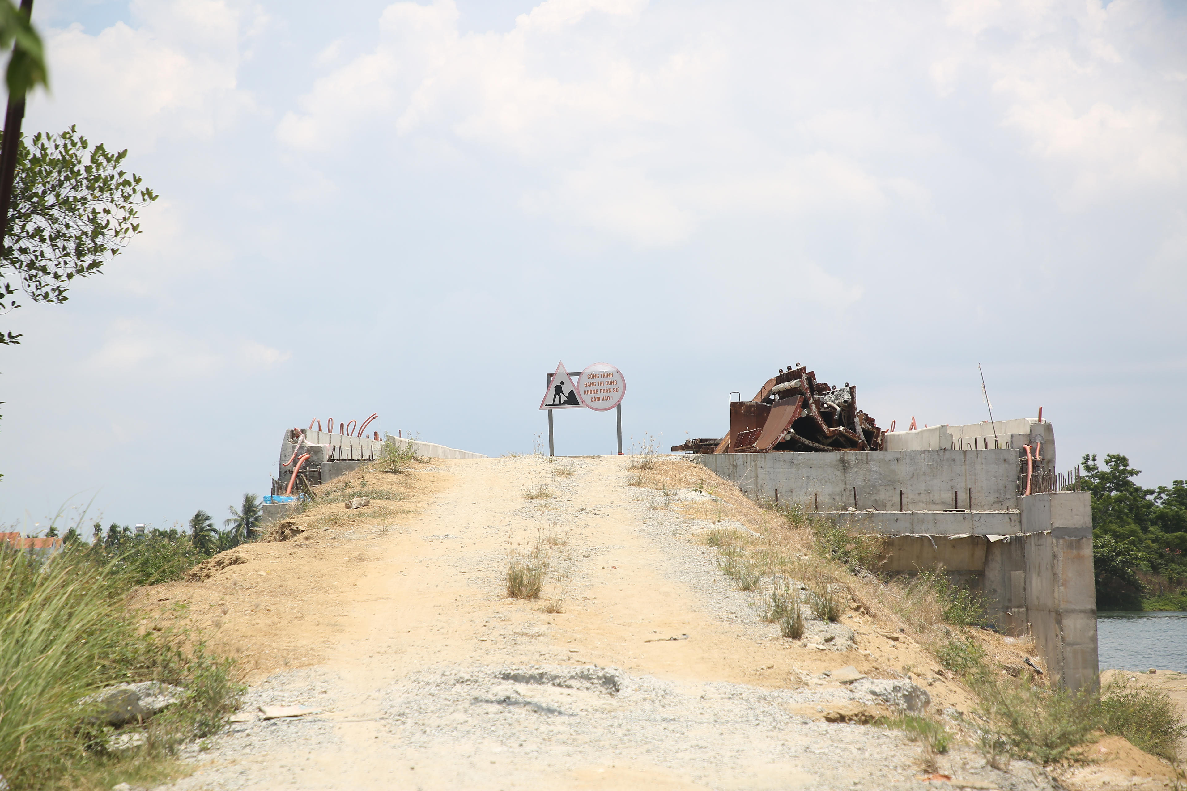 | Cầu Tam Giang chậm tiến độ gần 5 năm khiến người dân bức xúc. |