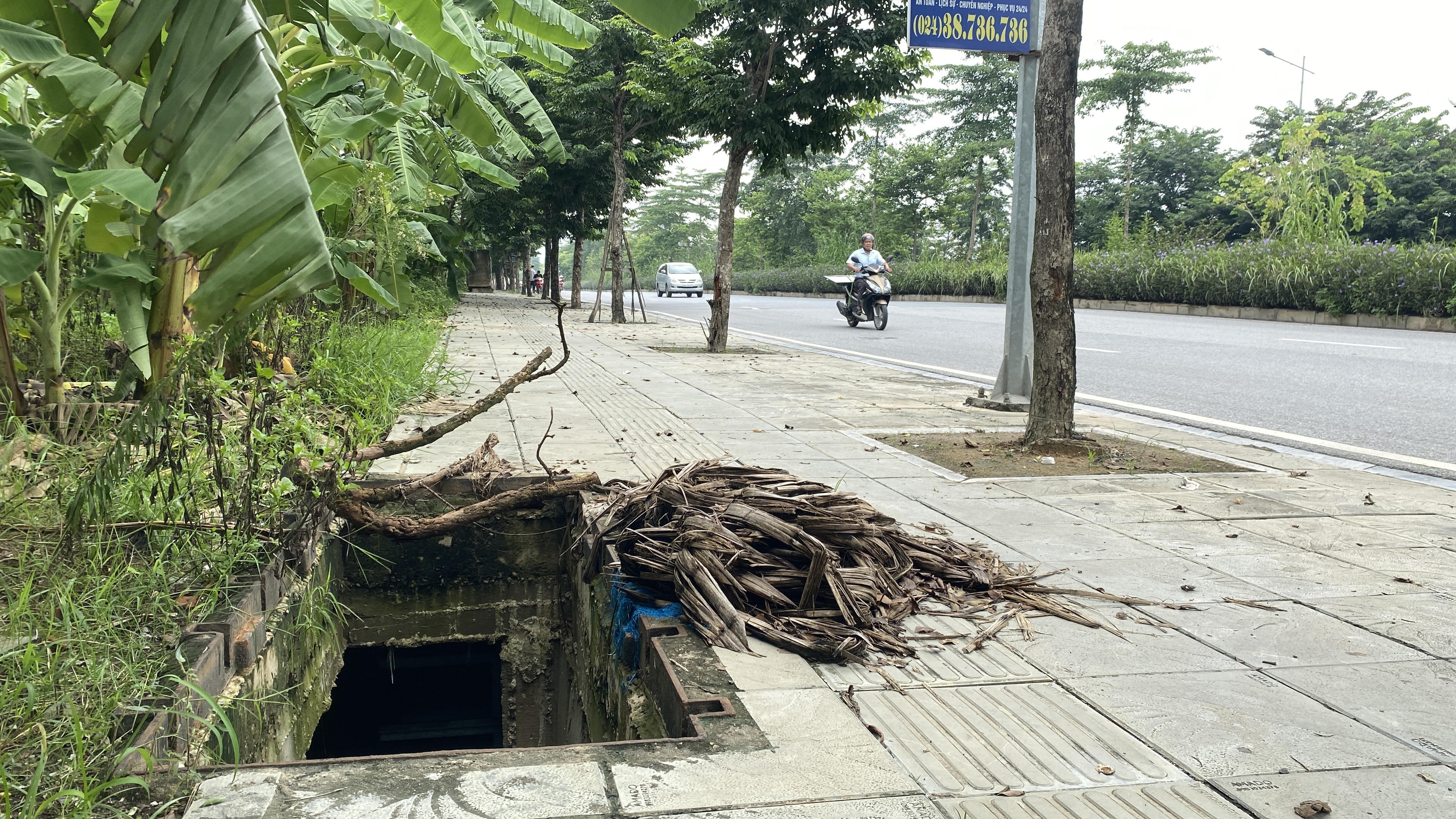 Hố ga mất nắp gây mất mỹ quan đô thị. Không chỉ thế, mỗi khi trời mưa, lượng rác trôi xuống hố gây ngập úng, tiềm ẩn nguy cơ tai nạn khi người dân lưu thông trong đêm.