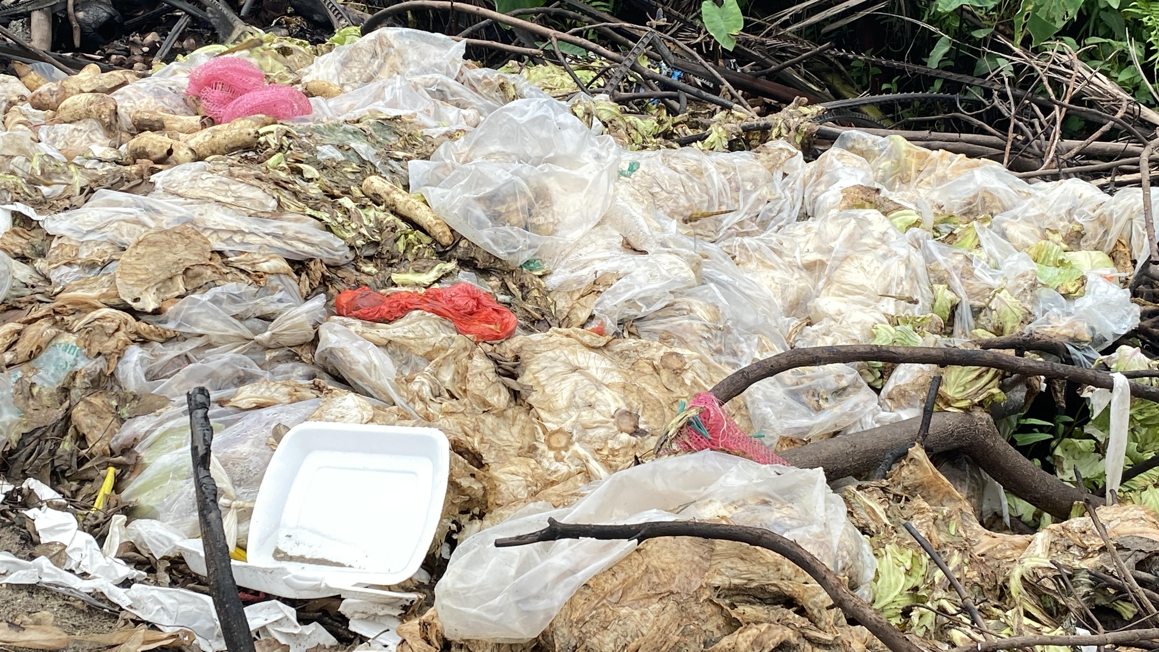 Sát bên đường, cạnh những hố ga mất nắp là rác thải