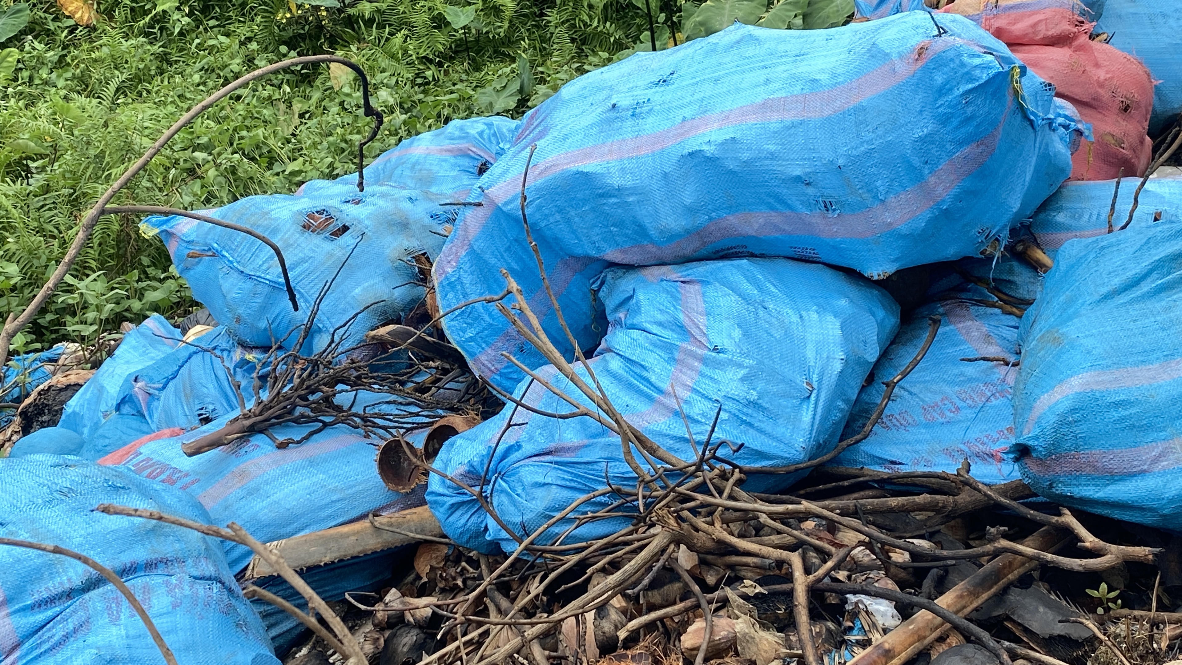 Để tránh nguy hiểm, người dân đã dùng bàn ghế hỏng, cành cây… cắm cảnh báo.