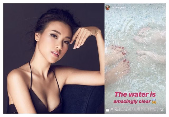 Trước đó, Hoàng Oanh cũng đăng lên Instagram story hình ảnh bàn chân của một ai đó. Các fan đồn đoán Hoàng Oanh và bạn trai đã có kì nghỉ dưỡng bên nhau.