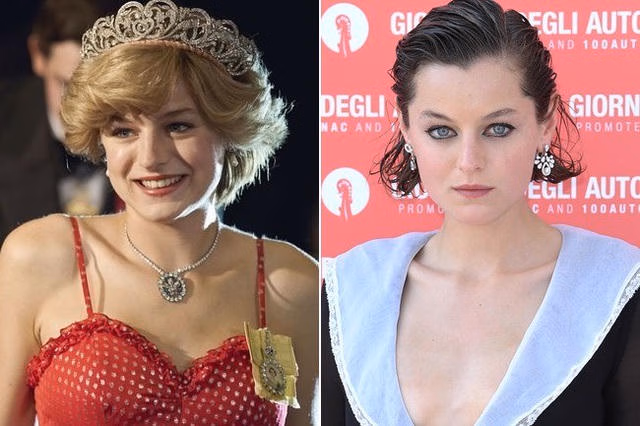 Emma Corrin ngoài đời (bên phải) trông cá tính và hiện đại hơn so với vai diễn mà cô thể hiện trong phim The Crown. Corrin đã giành được giải Quả cầu vàng cho vai diễn cố công nương Diana trong phần 4 của loạt phim The Crown trên kênh Netflix