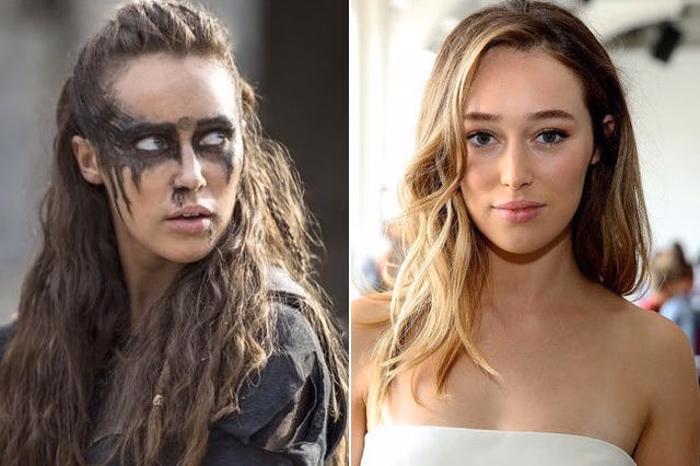 Alycia Debnam-Carey rất quyến rũ khi xuất hiện trên thảm đỏ (ảnh phải) còn khi thủ vai Lexa trong phim The 100 (ảnh trái), trông cô khá hoang dã. Nhìn chung các vai diễn của nữ diễn viên người Úc đều khá khó. Cô dường như không phải kiểu người yêu thích các bộ phim và vai diễn lãng mạn