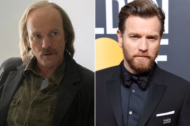 Ewan McGregor cũng thay đổi hình ảnh ngoạn mục khi nhận vai anh em sinh đôi Emmit và Ray Stussy (ảnh trái) trong bộ phim truyền hình Fargo