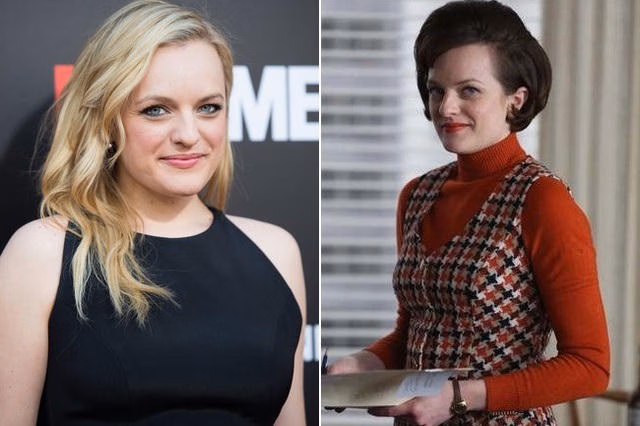 Elisabeth Moss xinh đẹp, duyên dáng ngoài đời thường khác hẳn với vai diễn Peggy Olson trong phim Mad Men (ảnh bên phải)