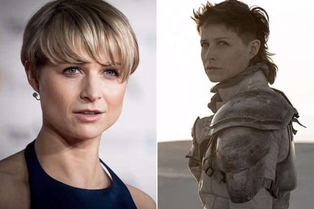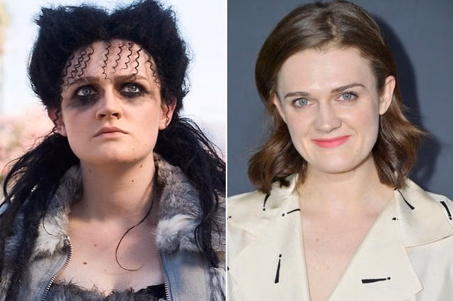 Niamh Algar đời thường (trái) cũng đã cá tính và mạnh mẽ nhưng vẫn thua xa vai diễn của cô trong bộ phim truyền hình Raised By Wolves (ảnh phải).