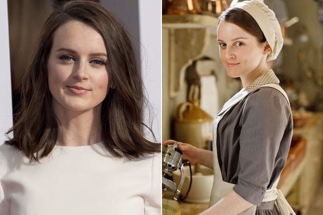 Sophie McShera đẹp như công chúa ngoài đời thường (ảnh trái) còn khi vào vai cô giúp việc trong phim Downton Abbey, trông cô rất giản dị
