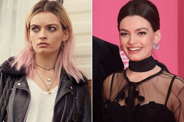 Emma Mackey nổi loạn với vai Maeve Wiley trong bộ phim Sex Education (ảnh trái) còn ngoài đời, cô rất nữ tính và sang trọng