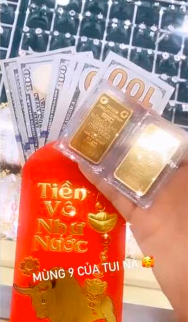 Trên trang cá nhân, Ngọc Trinh gây chú ý khi cô khoe được tặng 700 USD và 2 cây vàng trước ngày vía Thần tài (mùng 10 tháng Giêng).